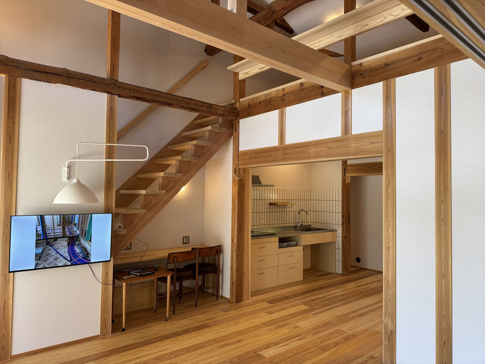 新たに壁を作り、梁を足して、耐震性能を上げています